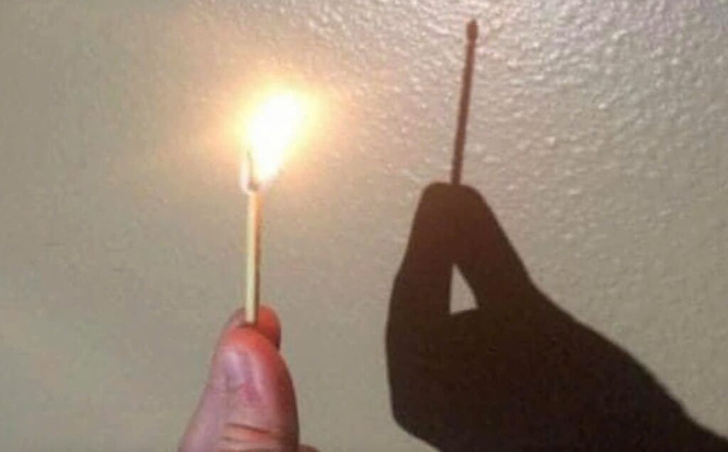 Vì sao ngọn lửa que diêm cháy không có bóng in lên tường?
